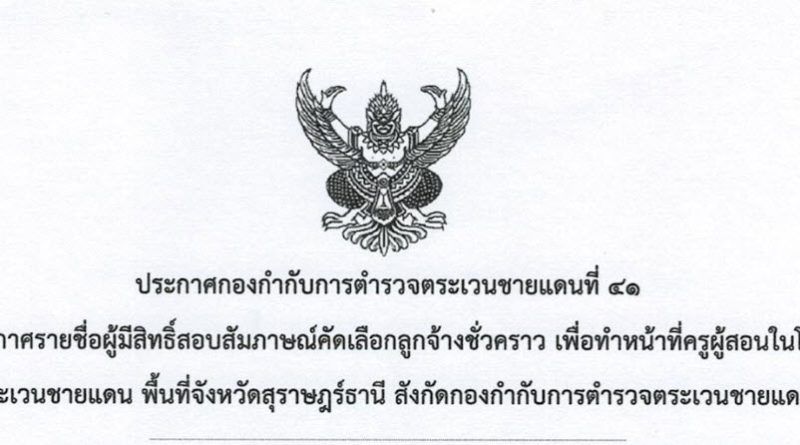 ข่าวประชาสัมพันธ์ข่าวสารและประชาสัมพันธ์ ประกาศรายชื่อผู้มีสิทธิ์สอบสัมภาษณ์ลูกจ้างชั่วคราว เพื่อทำหน้าที่ครูผู้สอนในโรงเรียนตำรวจตระเวนชายแดน พื้นที่จังหวัดสุราษฎร์ธานี 24 ตุลาคม 2025 tanawut pornweerasoon Post Views: 162