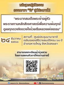“ พระบาทสมเด็จพระเจ้าอยู่หัว พระราชทานหลักสัจจศาสตร์เพื่อความพ้นทุกข์ ดูแลทุกดวงจิตดวงใจด้วยเรือหลวงแห่งธรรม”